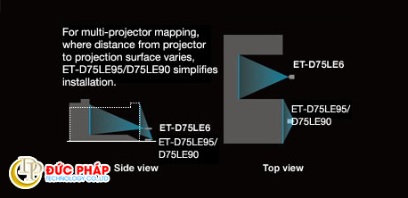 Để cung cấp đủ khoảng cách để chiếu hình ảnh lớn lên các sàn nhà, cơ sở hạ tầng lớn, thường được yêu cầu lắp đặt trên các tòa nhà gần đó hoặc giàn giáo đặc biệt. Ống kính máy chiếu Panasonic ET-D75LE90 cho phép chiếu hình ảnh có cùng kích thước từ các vị trí gần mặt phẳng chiếu, giúp đơn giản hóa rất nhiều trong việc cài đặt.