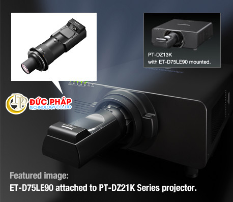Ống kính siêu ngắn ET-D75LE90 cho phép lắp đặt máy chiếu lớn trong không gian nhỏ và sử dụng chúng trong các ứng dụng hạn chế chiếu thông thường. Cơ hội mới cho các bảng hiệu kỹ thuật số, sử dụng trong không gian bán lẻ, triển lãm công cộng, và nhiều hơn nữa.