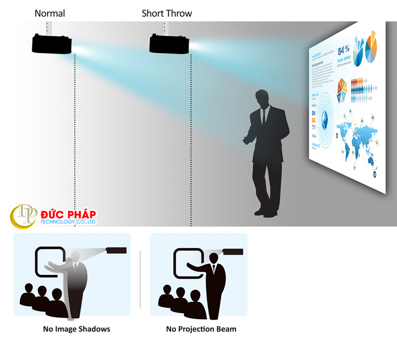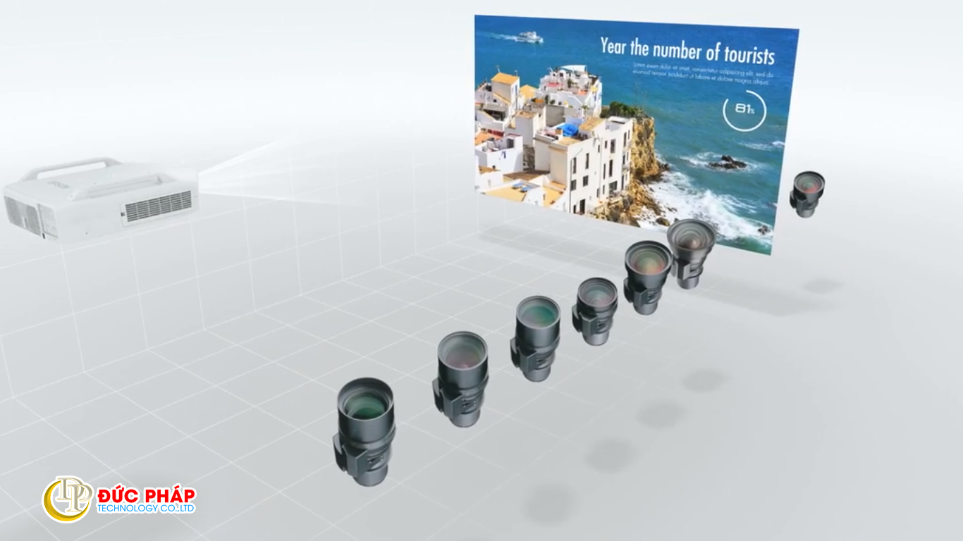 Khoảng cách chiếu: Khoảng cách chiếu rộng 2 m – 17,2 m Khoảng cách chiếu Tele 3,3 m – 27,8 m