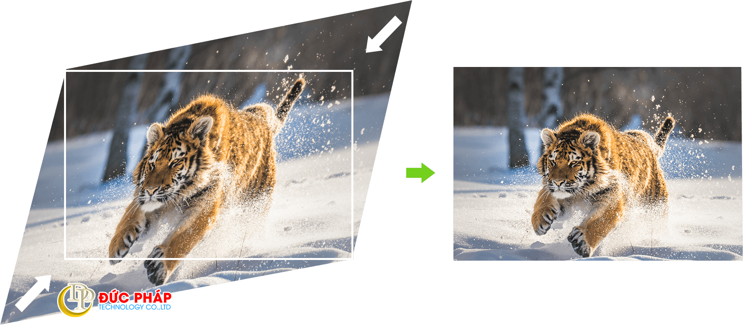 Điều chỉnh biến dạng từ bất kỳ góc nào. Ngay cả khi máy chiếu không được đặt đúng vị trí, chức năng này sẽ làm cho quá trình chỉnh sửa dễ dàng và tiết kiệm thời gian một cách đáng kể.