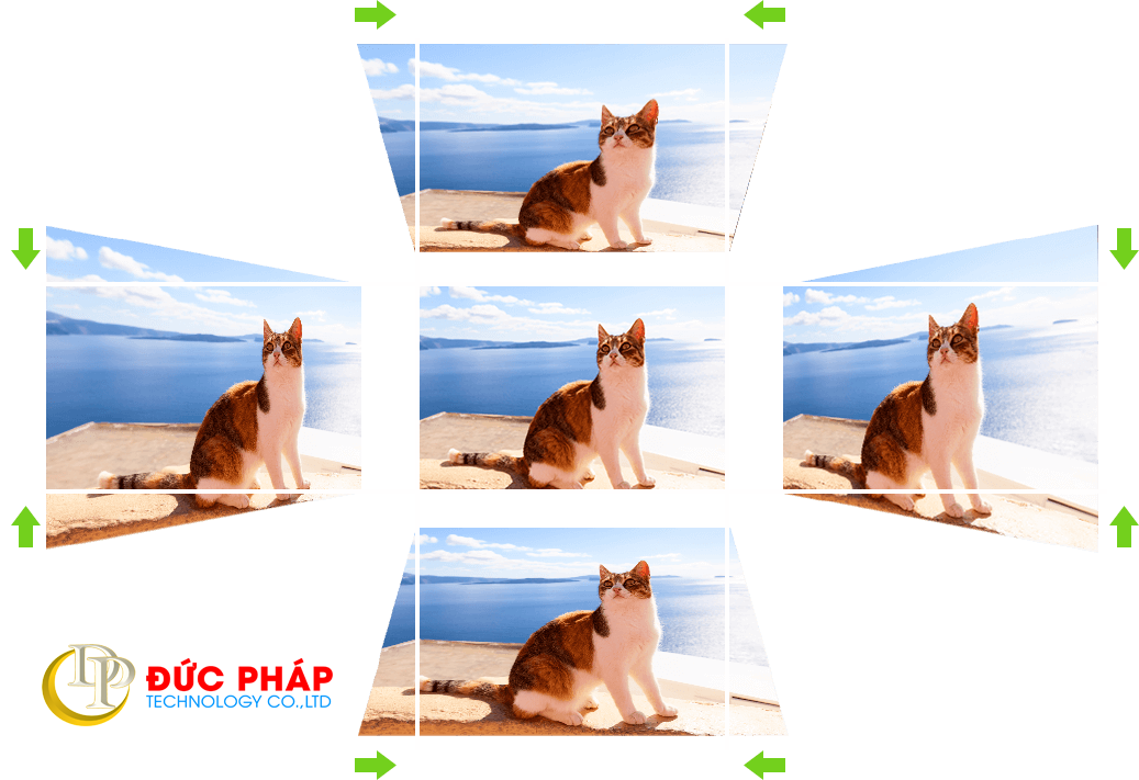 Méo hình ảnh đôi khi xảy ra khi máy chiếu được đặt với khoảng cách không đúng hoặc ở một vị trí sai. Với tính năng Keystone Correction, bạn có thể điều chỉnh cho hình ảnh vuông vức với màn hình rất dễ dàng và nhanh chóng.