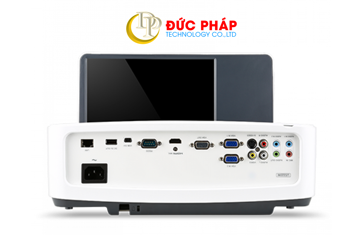 Kết nối: Analog RGB/Component Video (D-sub) x 2 Composite Video (RCA) x 1 S-Video (Mini DIN) x 1 HDMI/MHL (Video, Audio, HDCP) x 1 HDMI/MHL (Video, Audio, HDCP, Internal) x 1 PC Audio (Stereo mini jack) x 2 L/R Audio (Stereo RCA) x 1 Mic In (Stereo mini jack) x 1 Analog RGB (D-sub) x 1 PC Audio (Stereo mini jack) x 1 DC Out (5V/1A, USB Type A) x 1 DC Out (5V/1A, USB Micro-B, Internal Plug) x 1 USB (Mini-B) x 1, RS232 (D-sub) x 1, RF receiver jack (For Interactive SmartPen) x 1 Ethernet port (RJ45) x 1 Crestron Network Control (LAN, Web)