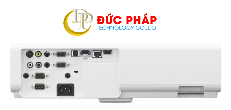Kết nối: NPUT ARGB / Y PB PR input connector: Mini D-sub 15-pin (female) Audio input connector: Stereo mini jack INPUT BRGB input connector: Mini D-sub 15-pin (female) Audio input connector: Stereo mini jack INPUT CHDMI input connector: HDMI 19-pin, HDCP support S VIDEO INS video input connector: Mini DIN 4-pin Audio input connector: Pin jack (x2) (shared with VIDEO IN) VIDEO INVideo input connector: Pin jack Audio input connector: Pin jack (x2) (shared with S VIDEO IN) OUTPUTMonitor output connector*4: Mini D-sub 15-pin (female) Audio output connector*5: Stereo mini jack (variable out) REMOTERS-232C connector: D-sub 9-pin (male) LANRJ-45, 10BASE-T/100BASE-TX USBType-A USBType-B MICROPHONE INMicrophone jack: Mini Jack
