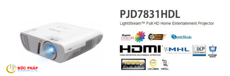 Máy chiếu ViewSonic LightStream ™ PJD7831HDL độ phân giải Full HD 1080p, độ sáng 3.200 ANSI Lumens, thiết kế trực quan, thân thiện với người dùng và khung máy màu trắng bóng bẩy. Công nghệ SuperColor ™ độc quyền cung cấp dải màu rộng hơn để trình chiếu hình ảnh chân thực dưới mọi ánh sáng, trong khi công nghệ tăng cường âm thanh độc quyền của SonicExpert ™, loa 10W để phát ra âm thanh rõ ràng và rõ ràng. PortAll ™ – ngăn kết nối HDMI / MHL được thiết kế gọn gàng, hỗ trợ các đầu nối HDMI không dây hoặc đầu nối MHL, trong khi nắp đậy quản lý cáp giúp loại bỏ tình trạng lộn xộn cáp khó coi. Với zoom quang 1,3x, keystone HV, khả năng điều chỉnh 4 góc và cổng USB công suất cao 10W, hỗ trợ kết nối rộng rãi, PJD7831HDL cung cấp thiết lập linh hoạt và nhanh chóng.